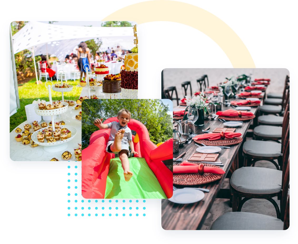 También tenemos Brincolines, Toldos, Manteles, Servilletas, Cubresillas y Accesorios para eventos.